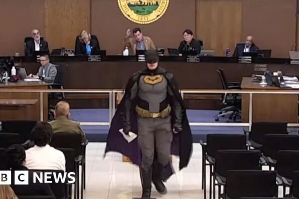 During a meeting with the Santa Clara City Council, a man dressed as Batman confronted city officials over the presence of Immigration and Custom Enforcement (ICE) agents at the upcoming Super Bowl at Levi’s Stadium. He told council members they had months to prepare for the event and said the city needed to “reaffirm” that…