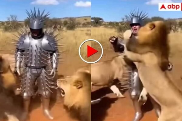 Video: लोहे की ड्रेस पहन खूंखार शेरों के बीच कूदा युवक, आगे जो हुए देखकर नहीं आएगा यकीन