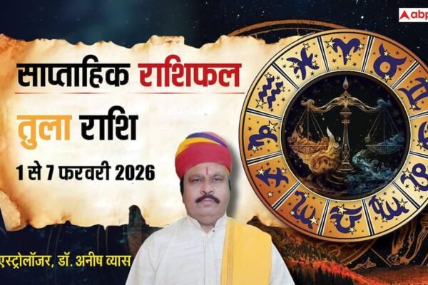 Libra Weekly Horoscope 2026 (1 to 7 February): फरवरी 2026 महीने का पहला सप्ताह 1 से 7 जनवरी का समय तुला राशि के करियर, कारोबार, आर्थिक स्थिति, पारिवारिक व प्रेम जीवन और सेहत आदि के लिए यह सप्ताह कैसा रहेगा. तुला राशि वाले ज्योतिषाचार्य अनीष व्यास से जानें अपना भविष्यफल. यहां पढ़ें पूरा साप्ताहिक राशिफल….