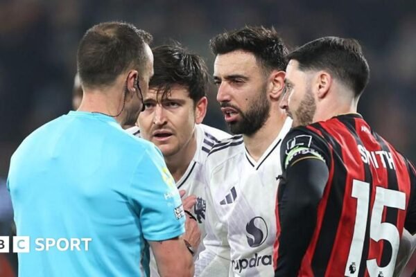 मैनचेस्टर यूनाइटेड वे “आश्चर्यजनक” और “चकित करने वाले” रेफरी के निर्णयों से क्रोधित हो गए क्योंकि दो दंड दिए गए और एक भी उनके रोमांचक 2-2 ड्रा में नहीं था बौर्नेमौथ. हैरी मैगुइरे का विशेष दिन – निम्नलिखित उनका इंग्लैंड स्मरण – विटैलिटी स्टेडियम में उनके आउट होने से स्थिति खराब हो गई थी, लेकिन…
