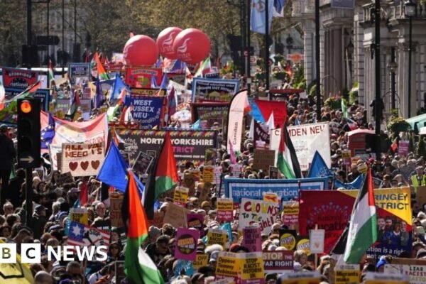 लंदन में धुर दक्षिणपंथ विरोधी मार्च के लिए हजारों लोग एकत्र हुए