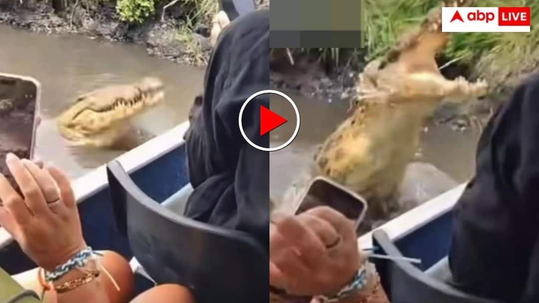 दरअसल, सोशल मीडिया पर एक वीडियो तेजी से वायरल हो रहा है जिसमें कुछ लोग जंगल सफारी के दौरान नदी में जंगली जीवों की साइटिंग के लिए जा रहे हैं. पर्यटक नाव में बैठकर नदी का नजारा कैमरे में कैद कर ही रहे होते हैं कि किनारे बैठा एक मगरमच्छ पानी के अंदर से चलते हुए नाव के करीब आ जाता है. लोगों को इसका अंदाजा तो होता है लेकिन उन्हें ये ख्याल नहीं आता कि मगरमच्छ हमला भी कर देगा.