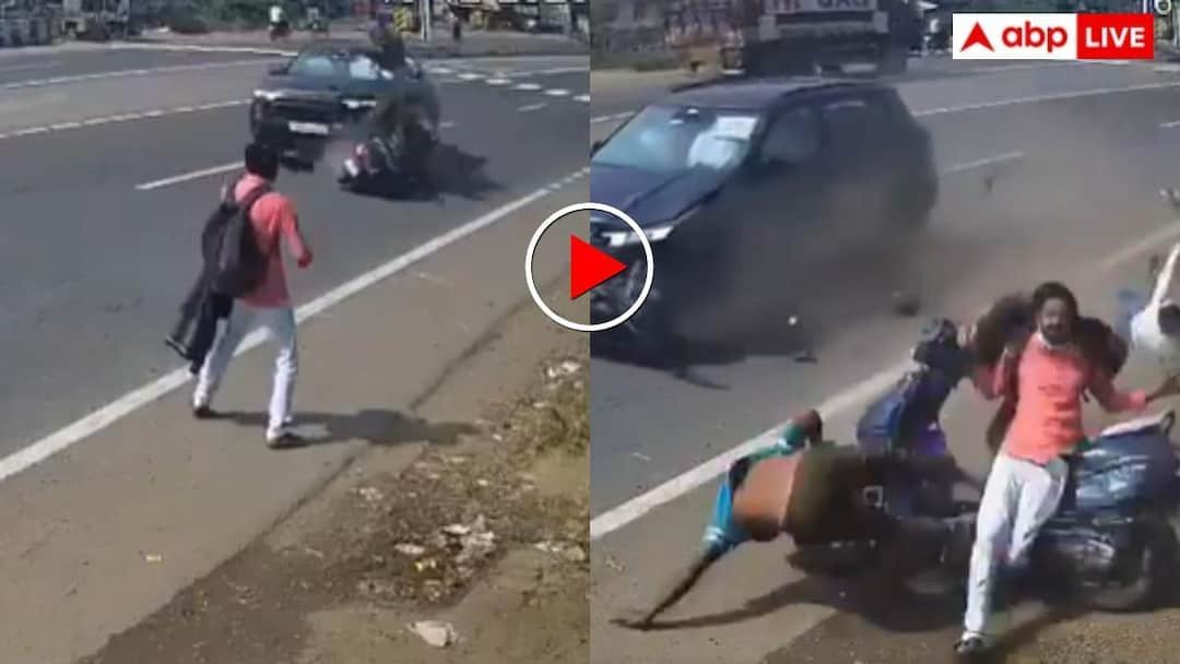 Video: सड़क पर मौत बनकर दौड़ी कार, यूटर्न पर स्कूटी को मारी टक्कर- सड़क किनारे खड़े शख्स की आई शामत