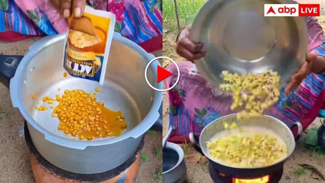 वायरल वीडियो में सबसे पहले महिला कच्चे पॉपकॉर्न के दानों को कुकर या बर्तन में डालकर उन्हें अच्छी तरह से फुला लेती है. जैसे ही पॉपकॉर्न तैयार होते हैं, वह उन्हें अलग निकालकर रख देती है. इसके बाद महिला एक कढ़ाई चूल्हे पर चढ़ाती है और उसमें मक्खन डालती है. मक्खन पिघलते ही उसमें बारीक कटे प्याज डाले जाते हैं, जिन्हें हल्का सुनहरा होने तक भूना जाता है. इसके बाद वह अलग-अलग सब्जियां डालती है, जिनमें हरी सब्जियां और कुछ मसालेदार सामग्री शामिल होती है.