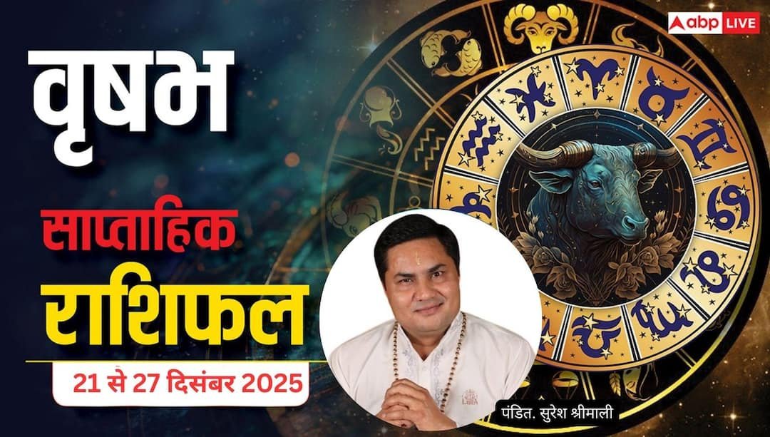 Vrishabh Saptahik Rashifal 21 to 27 December 2025: इस सप्ताह की शुरुआत वृषभ राशि के जातकों के लिए संतुलन और समझदारी की मांग करेगी. यदि आप अपनी ऊर्जा और धन का सही मैनेजमेंट करके चलते हैं, तो आपके प्रयासों का सकारात्मक परिणाम अवश्य मिलेगा. हालांकि सप्ताह के शुरुआती दिनों में कुछ बड़े खर्च सामने आ सकते हैं, जिससे थोड़ी चिंता रहेगी.
