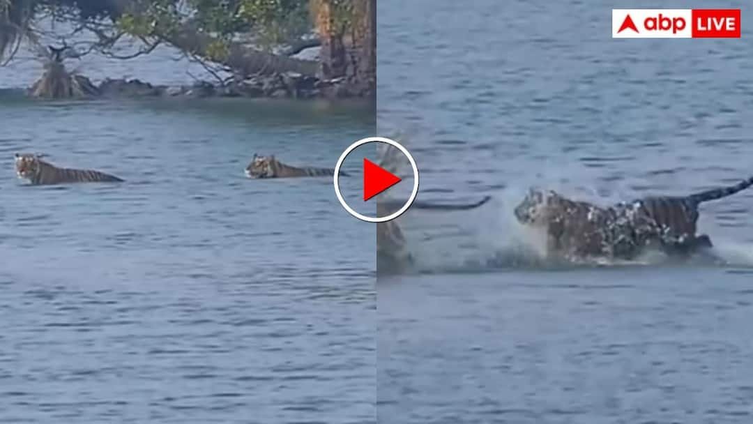 वायरल हो रहे वीडियो में देखा जा सकता है कि एक के बाद एक बाघ पानी में उतरते हैं और पूरे आत्मविश्वास के साथ नदी पार करते हैं. सबसे आगे ताकतवर टाइगर, उसके पीछे शावक और परिवार के अन्य सदस्य, हर कदम में जंगल के राजा की ठसक साफ झलकती है. पानी की तेज लहरों के बीच बाघों का संतुलन और तालमेल लोगों को हैरान कर रहा है.
