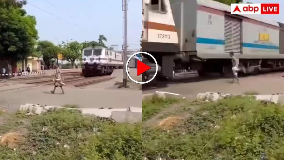 वीडियो में दिख रहा है कि यह युवक केवल कुछ सेकंड के फर्क से ट्रेन से टकराने से बच गया और उसे एक दम सही समय पर अहसास हो गया कि दूसरी ओर से मौत दौड़ती हुई आ रही है. ट्रेन की रफ्तार भी 100 से ज्यादा ही लग रही है, मतलब अगर युवक ट्रेन से टकराता तो उसके शरीर के परखच्चे उड़ जाते. वीडियो अब वायरल है जिसे लेकर यूजर्स तरह तरह के रिएक्शन दे रहे हैं.