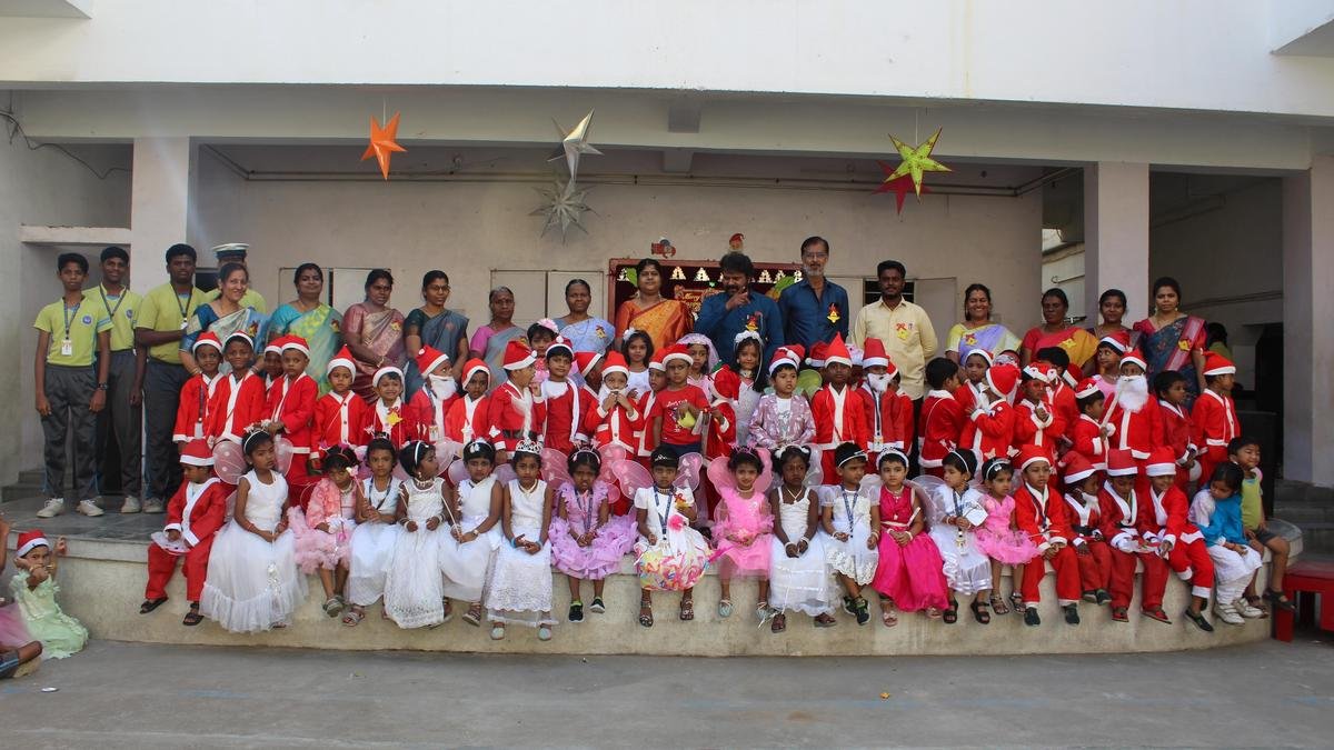 Rajan Matric Higher Secondary School in Villapuram celebrated Christmas. The highlight of the event was the dance performances by the KG students, who were dressed in festive attire. Children squealed with delight as Santa distributed gifts and sweets, spreading joy and cheer.