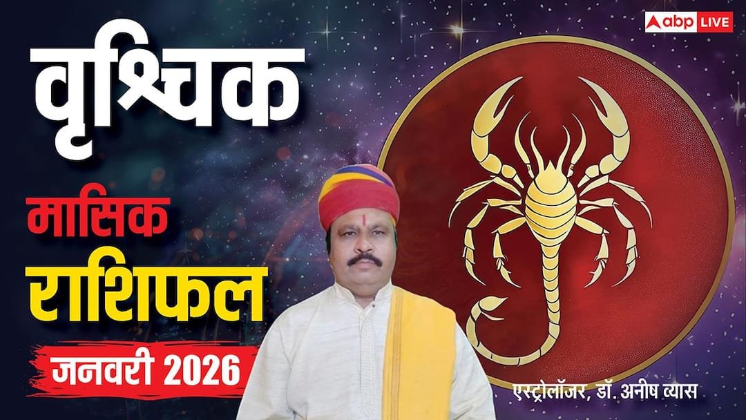 Vrishchik January horoscope 2026: वृश्चिक राशि के जातकों के लिए जनवरी का महीना सामान्य लाभ एवं सफलता लिए हुए है. इस माह आपको अपने काम को पूरे मनोयोग के साथ समय पर करने की आवश्यकता बनी रहेगी. थोड़ी सी भी लापरवाही या आलस्य से आपके बने-बनाए काम बिगड़ सकते हैं. नौकरीपेशा लोगों को माह की शुरुआत में कामकाज से जुड़ी कुछेक मुश्किलें आ सकती हैं लेकिन आप अपनी बुद्धि और विवेक तथा इष्टमित्रों की मदद से उसे दूर करने में अंतत: कामयाब हो जाएंगे.