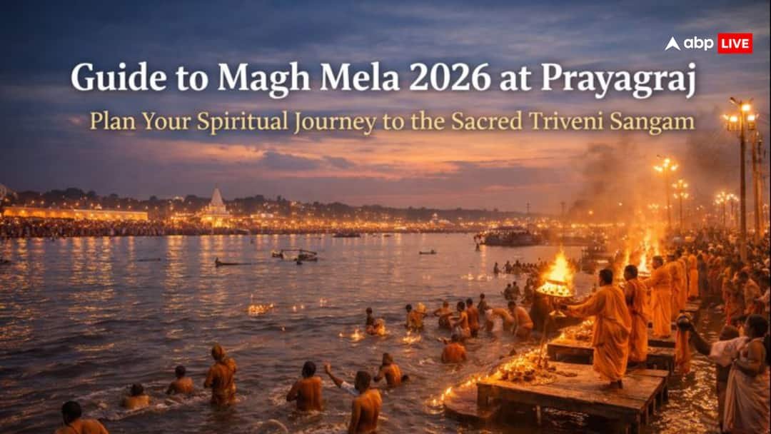 Magh Mela 2026 Guide: प्रयागराज में माघ मेला 2026 की भव्य शुरुआत हो चुकी है. भक्ति, आस्था, रीति-रिवाजों और नदी के किनारे शांत अनुभवों से भरा एक महीना काफी आध्यात्मिक रहने वाला है. त्रिवेणी संगम में पवित्र स्नान से लेकर शाम की मन मोह लेने वाली आरती तक, आज के इस लेख में हम आपको यात्रा से जुड़ी संपूर्ण गाइड की जानकारी देने जा रहे हैं.