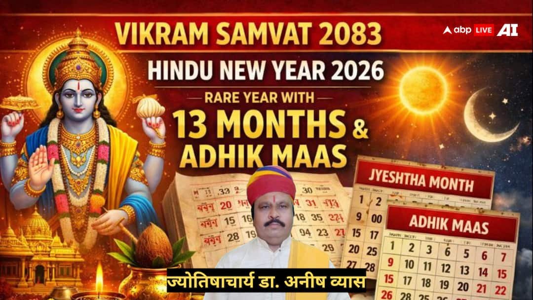 भविष्यवक्ता और कुण्डली विश्ल़ेषक डॉ अनीष व्यास ने बताया कि विक्रम संवत 2083 में ज्येष्ठ का अधिक मास होने से ये साल 12 नहीं बल्कि 13 महीनों का रहेगा. अधिक मास यानी इस साल ज्येष्ठ का महीना 30 नहीं बल्कि 60 दिनों का होगा. ज्येष्ठ का अधिक मास 17 मई से 15 जून 2026 तक रहेगा.
