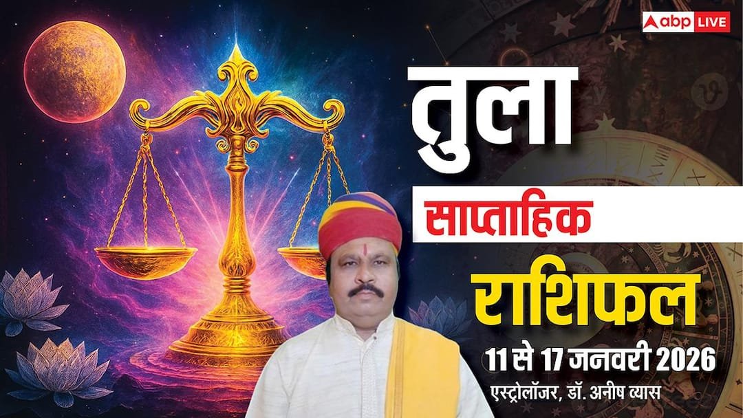 Tula Weekly Horoscope 2026 (11 to 17 January): जनवरी 2026 महीने का नया सप्ताह 11 से 17 जनवरी का समय तुला राशि के लिए यह सप्ताह मिश्रित फलदायी है. सप्ताह की शुरुआत कुछ भागदौड़ और खर्चों के साथ हो सकती है.