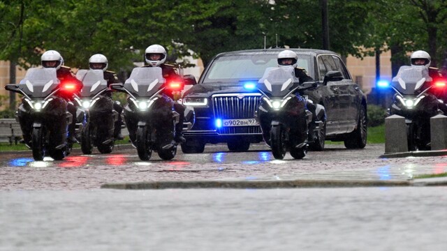 7. It Travels with Putin Abroad | The Kremlin usually ships one or more Senat limousines during foreign visits as part of the security convoy. In Russia, the motorcade can include escorts from Ural and BMW, backed by the Special Purpose Garage fleet. Support vehicles may include Mercedes-Benz G-Class and S-Class models, Volkswagen Caravelle-type vans, and others. On foreign trips, the host country’s security also adds vehicles. (Image: Reuters)