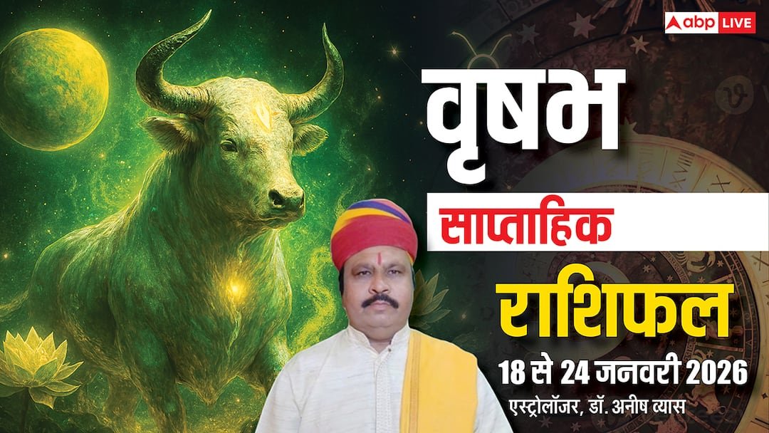 Vrishabh Weekly Horoscope 2026 (18 to 24 January): जनवरी 2026 महीने का नया सप्ताह 18 से 24 जनवरी का समय वृषभ राशि के लिए खर्च और चिंता बढ़ाने वाला रह सकता है. अचानक धन व्यय, संतान को लेकर फिक्र और निर्णय में असमंजस रहेगा. करियर में जिम्मेदारी जरूरी है। रिश्तों व प्रेम में संयम रखें.