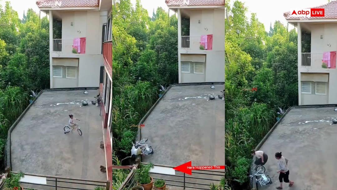 Video: छत पर साइकिल दौड़ा रही थी बच्ची, बैलेंस बिगड़ा, सीधे नीचे गिरी, देखें डरावना वीडियो