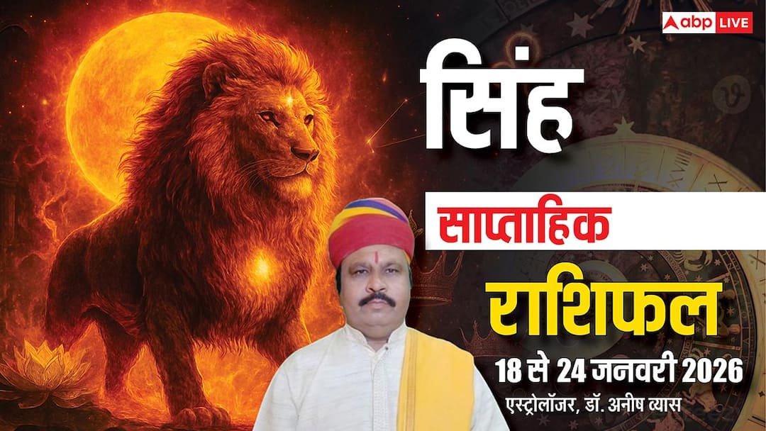 Singh Weekly Horoscope 2026 (18 to 24 January): जनवरी 2026 महीने का नया सप्ताह 18 से 24 जनवरी का समय सिंह राशि वालों के लिए सप्ताह की शुरुआत व्यस्त और मेहनत भरी रहेगी. कारोबार में लाभ मिलेगा, लेकिन सप्ताहांत में. नौकरी में मेहनत की सराहना होगी. धन लेन-देन में सावधानी रखें. प्रेम संबंधों में संवाद से गलतफहमी दूर होगी.