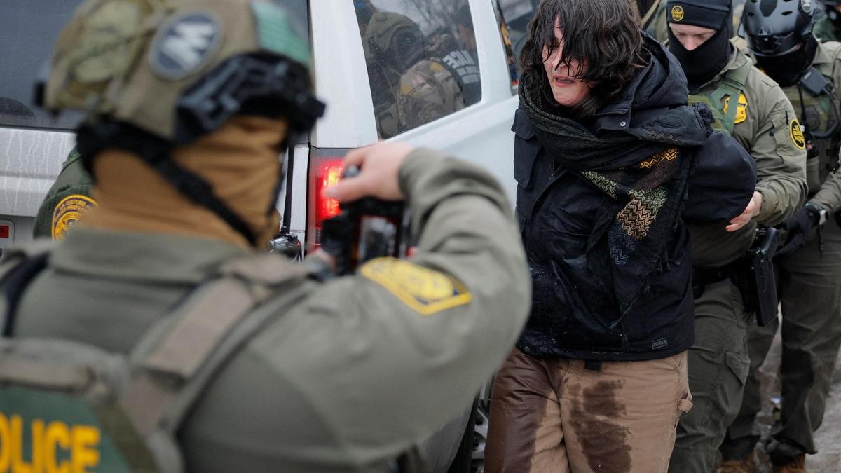 U.S. Border Patrol Agents, including one carrying a camera and working with Border Patrol commander Greg Bovino, detain a protester a day after the fatal shooting of Renee Nicole Good by a U.S. Immigration and Customs Enforcement (ICE) agent, in Minneapolis, Minnesota, U.S., January 8, 2026.