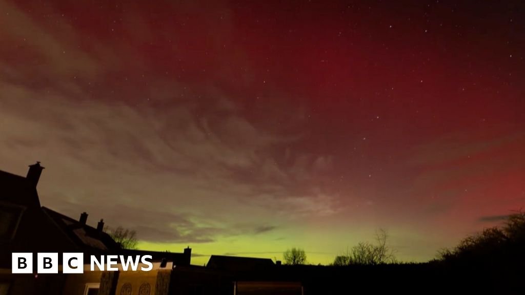 Skies across the UK were lit up in hues of green and pink by the Northern Lights on Monday evening.