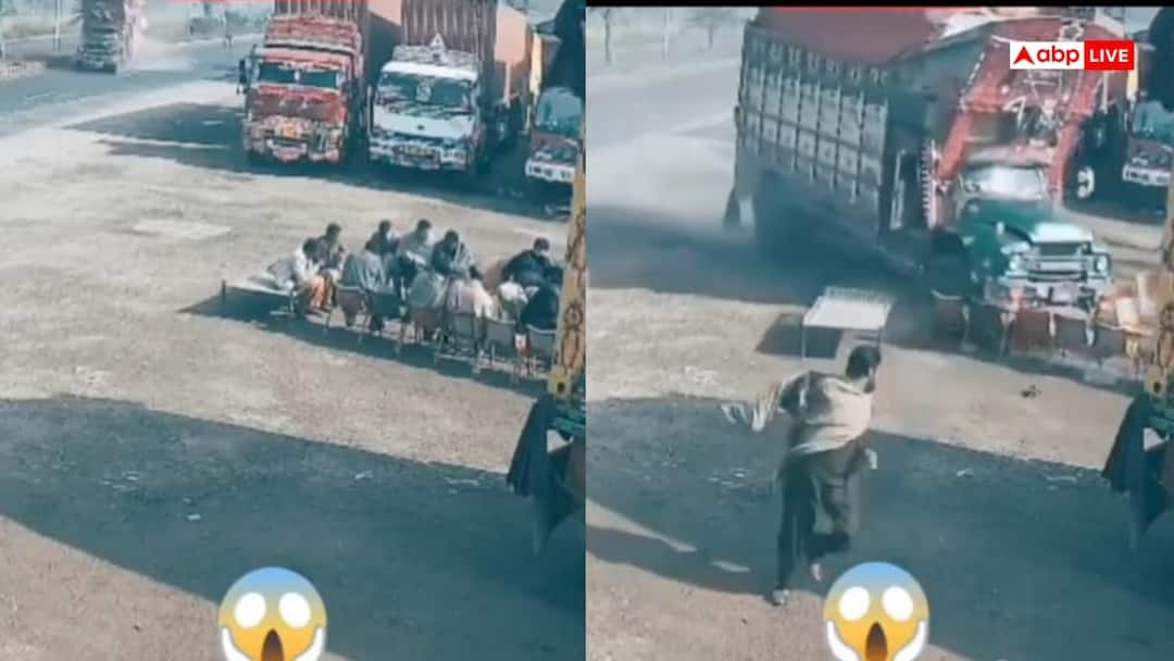 वीडियो में देखा जा सकता है कि कुछ लोग ढाबे के बाहर कुर्सियों पर बैठे हैं. तभी अचानक एक तेज रफ्तार ट्रक आता है और कुर्सियों को टक्कर मारते हुए अंदर घुस जाता है. हालांकि कुर्सियों पर बैठे लोग ट्रक को आते देख चंद सेकेंड पहले ही वहां से उठ जाते हैं. लोग डर के मारे तुरंत अपनी कुर्सियों को छोड़ कर इधर-उधर भाग खड़े हुए.