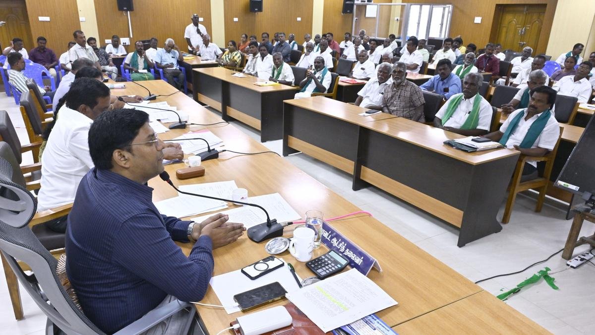 Collector K.J. Praveen Kumar presiding over the farmers’ grievance redress meeting in Madurai on Friday.