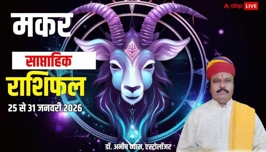 Makar Weekly Horoscope 2026 (25 to 31 January): जनवरी 2026 महीने का यह नया सप्ताह 25 से 31 जनवरी का समय मकर राशि के करियर, कारोबार, आर्थिक स्थिति, पारिवारिक व प्रेम जीवन और सेहत आदि के लिए यह सप्ताह कैसा रहेगा. मकर राशि वाले यहां पढ़ें अपना पूरा साप्ताहिक राशिफल.