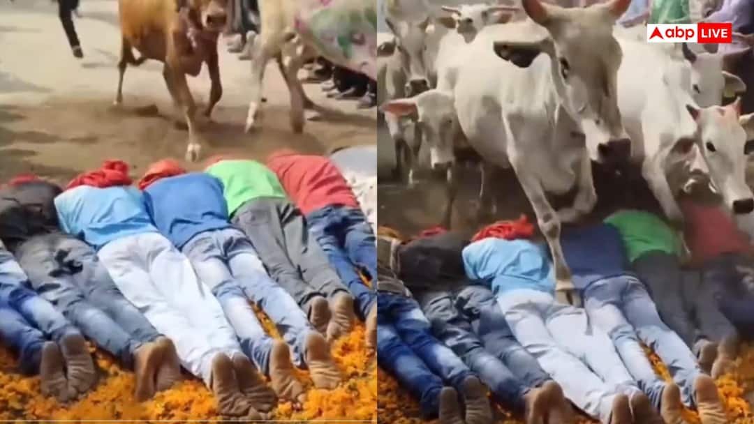 Viral Video: सोशल मीडिया प्लेटफॉर्म पर एक अजीबोगरीब वीडियो तेजी से वायरल हो रहा है, जिसने लोगों को हैरान और चिंतित कर दिया है. वीडियो में जमीन पर सात लोग लेटे हुए दिखाई दे रहे हैं, और उनके सामने गायों का एक बड़ा झुंड तेजी से चलता हुआ आता है. जैसे ही झुंड उनके ऊपर से गुजरता है, यह दृश्य बेहद डरावना और खतरनाक लगता है. कई लोग वीडियो को देखकर चौंक गए हैं, क्योंकि ऐसा करने से गंभीर चोटें भी लग सकती हैं.