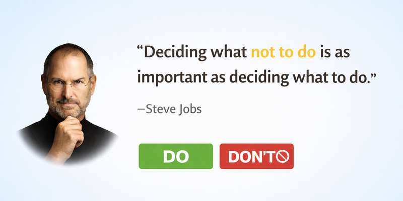 Steve Jobs was famous for this discipline. Apple did not succeed by building everything. It succeeded by not building most things. Entire product lines were cut so that a few could be perfected. This focus wasn’t accidental—it was strategic subtraction.