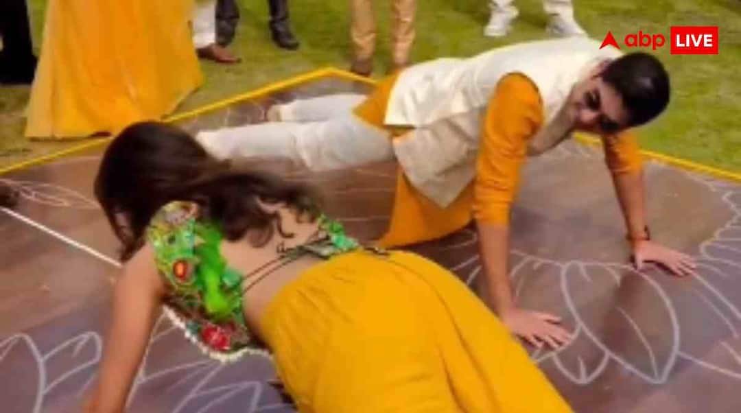वायरल वीडियो एक हल्दी समारोह का बताया जा रहा है. वीडियो में देखा जा सकता है कि माहौल पूरी तरह से खुशियों से भरा हुआ है. परिवार वाले और रिश्तेदार हंसी-मजाक कर रहे हैं. इसी दौरान लड़के और लड़की पक्ष के लोगों को एक मजेदार आइडिया सूझता है और वे फिटनेस प्रतियोगिता कराने का फैसला करते हैं. सभी की मौजूदगी में दूल्हा और दुल्हन को पुशअप्स करने की चुनौती दी जाती है. वहां मौजूद लोग तालियां बजाकर और आवाज लगाकर दोनों को उत्साहित करने लगते हैं. माहौल और भी ज्यादा मजेदार हो जाता है.