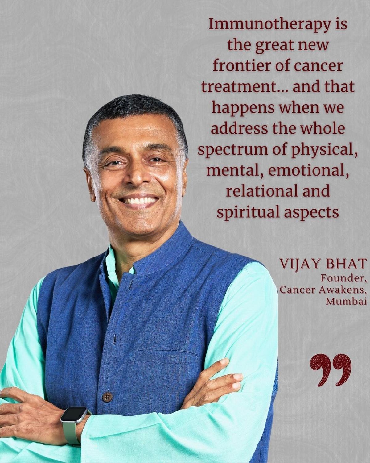Bhat, co-author of My Cancer Is Me: The Journey From Illness To Wholeness (2013), is founder of the organisation Cancer Awakens in Mumbai. Colon cancer in his early 50s brought the former CEO of ad agency Ogilvy & Mather back to India. Now, he is a cancer survivor of 25 years — a “cancer thriver” in wellness-oncology speak.