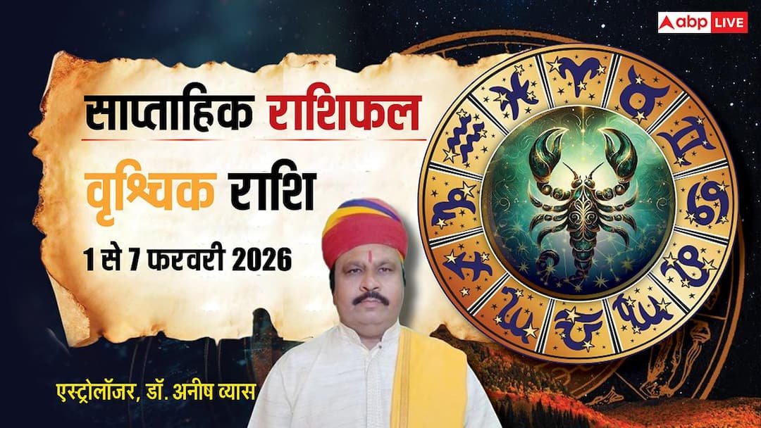 Vrishchik Weekly Horoscope 2026 (1 to 7 February): फरवरी 2026 महीने का पहला सप्ताह 1 से 7 फरवरी का समय वृश्चिक राशि के करियर, कारोबार, आर्थिक स्थिति, पारिवारिक व प्रेम जीवन और सेहत आदि के लिए यह सप्ताह कैसा रहेगा. ज्योतिषाचार्य अनीष व्यास से वृश्चिक राशि वाले जानें अपना भविष्यफल, यहां पढ़ें पूरा साप्ताहिक राशिफल.
