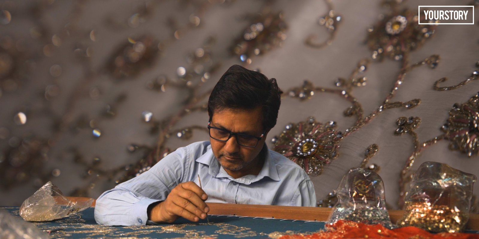Saqib, a State Award–winning artisan from Shekhupur, Badaun, has been practising zari zardozi for over 25 years. He recalls that while the craft has long existed in the district, artisans earlier had limited access to larger markets. Recognition and visibility were often confined to local networks.