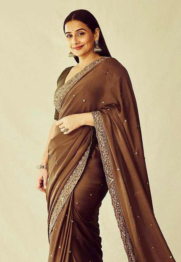 Leave it to Vidya to remind us that nothing beats a classic. Her silk brown saree with that delicate gold border is the fashion equivalent of a vintage artisanal chocolate bar. It’s rich, sophisticated, and perfectly aged.