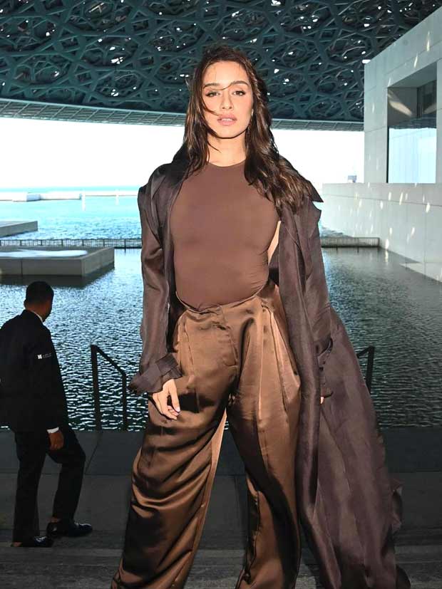 Shraddha is playing with the full spectrum of the chocolate palette here. Pairing a matte bodysuit with satin pants and a matching coat is a total flex. It’s layered, it’s complex, and it’s very “Editor-in-Chief.”
