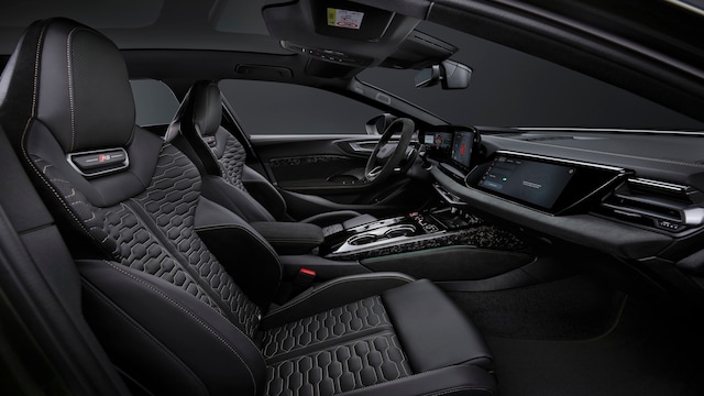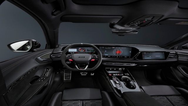 Interior Changes: Inside, Audi replaces capacitive steering controls with physical buttons and click-wheels following customer feedback. Screen graphics are revised for clarity while moving. RS-specific features include Dinamica trim, red cabin accents and standard heated, massaging, powered sports bucket seats, with ventilation optional. The digital display and central infotainment system provide performance data, navigation and connectivity functions.