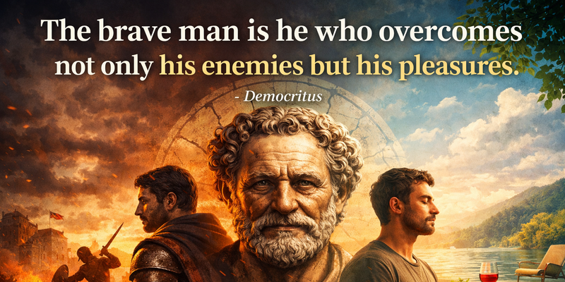ऐसी दुनिया में जो अक्सर बहादुरी को ताकत के दृश्य कार्यों के साथ जोड़ती है – लड़ाई जीतना, प्रतिद्वंद्वियों को हराना, या बाहरी खतरों के सामने मजबूती से खड़ा रहना – डेमोक्रिटस एक शांत, अधिक मांग वाली परिभाषा प्रदान करता है। उनका सुझाव है कि सच्चा साहस केवल शत्रुओं पर विजय पाने में नहीं है, बल्कि अपने स्वयं के सुखों पर विजय प्राप्त करने में है।