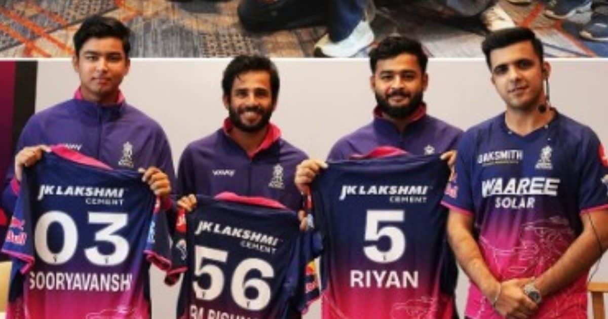 Rajasthan Royals new jersey: आईपीएल के पहले सीज़न की विजेता राजस्थान रॉयल्स ने आगामी 2026 सीजन के लिए अपनी नई जर्सी लॉन्च की. नए नवेले कप्तान रियान पराग, युवा बल्लेबाज वैभव सूर्यवंशी और लेग स्पिनर रवि बिश्नोई सहित कई अधिकारी जर्सी लॉन्चिंग के लिए मौजूद थे. 2008 के आईपीएल विजेता ने इंस्टाग्राम पर अपनी हमेशा की तरह नीले और गुलाबी रंगों वाली जर्सी का अनावरण करते हुए कैप्शन में लिखा: ‘नया लुक, वही हल्ला बोल. जर्सी: आरआर का अनावरण.