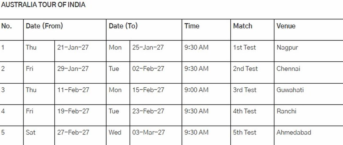 The season will culminate with the prestigious and much-anticipated Border-Gavaskar Trophy, featuring a five-match Test series against Australia, beginning on January 21 in Nagpur. The contest will then move to Chennai, Guwahati, Ranchi, and Ahmedabad.