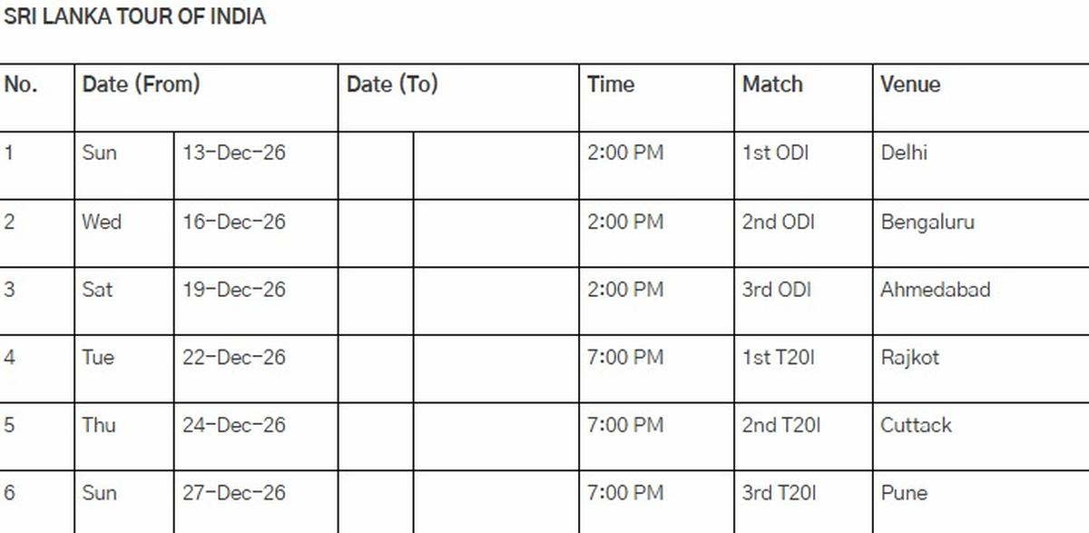 India will then host Sri Lanka in December for a white-ball series comprising three ODIs and as many T20Is. The ODI leg will be played in Delhi, Bengaluru, and Ahmedabad, while Rajkot, Cuttack, and Pune will host the T20Is.