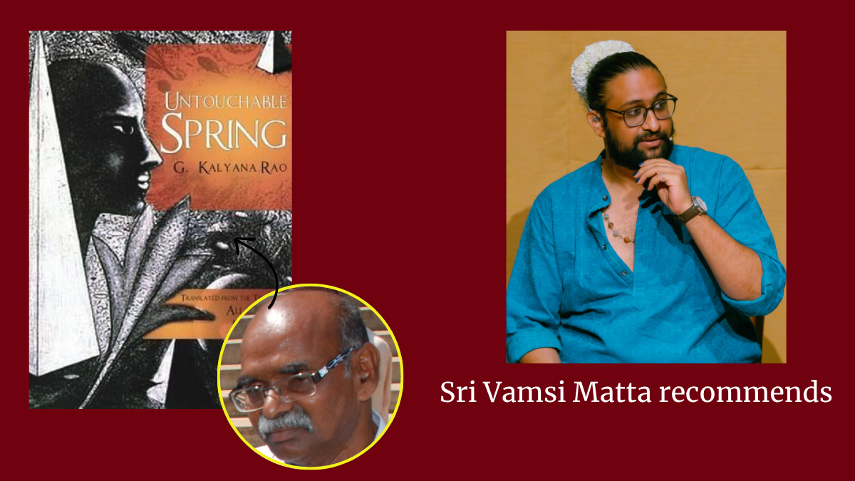 “जी. कल्याण राव एक आवश्यक पुस्तक है। पहली बार 2000 में अंतरानी वसंतम के रूप में तेलुगु में प्रकाशित, इसका 2010 में अल्लादी उमा और एम. श्रीधर द्वारा अनुवाद किया गया था। मैंने इसे 17 या 18 साल की उम्र में पढ़ा था, और एक दशक बाद अपना पहला नाटक लिखने के दौरान वापस लौटा। यह एक उपन्यास है, एक तरह का संस्मरण है, एक पारिवारिक गाथा है, और, मेरे लिए, एक दलित महाकाव्य है। यह पुस्तक एक दलित परिवार की सात पीढ़ियों का पता लगाती है, जो दर्शाती है यह आंध्र प्रदेश के एन्नेलाडिन्नी में माला और मडिगा समुदायों के जीवन पर केंद्रित है। यह दलितों के ईसाई धर्म में रूपांतरण के बारे में प्रचलित कहानियों पर प्रकाश डालती है, जबकि जातिगत भेदभाव नए रूपों में जारी है। पुस्तक अपने पात्रों के माध्यम से यह दावा करती है कि प्रतिरोध एक आवश्यकता है, न कि एक विकल्प। इसके मूल में, यह पुस्तक मेरे लोगों की स्मृति रखती है, जिनका जीवन, संस्कृति और इतिहास बिल्कुल उनके वसंत की तरह है – “अछूत”।श्री वामसी मट्टाअंतःविषय थिएटर कलाकार