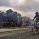 7 अप्रैल, 2026 को मणिपुर के बिष्णुपुर जिले में एक बम हमले में दो बच्चों की मौत और उनकी मां के घायल होने के विरोध में लोगों द्वारा जलाए गए ईंधन टैंकरों के जले हुए अवशेषों के पास से गुजरते लोग। | फोटो साभार: पीटीआई